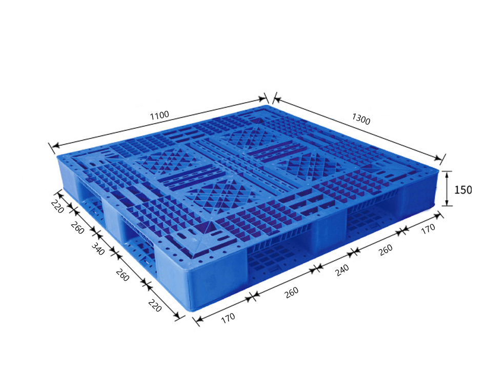 對于占地面積大平房貨場,以水平運輸為主的場合,若用手動托盤車則用單面的,若用機(jī)械叉車或電動叉車,用單面托盤和雙面托盤都適合。如果用解析叉車進(jìn)行碼垛堆放的場合,托盤的下面和下部貨物的上面相重合,可以選用雙面規(guī)格的托盤較好。若用手動液壓搬運車搬運則適合選用單面托盤,九腳、川字、田字都可以;若用電動叉車搬運,則單面托盤和雙面托盤都適合;若用可自行的機(jī)動托盤搬運車搬運,則可選用底部沒有連接條的九腳型單面托盤。